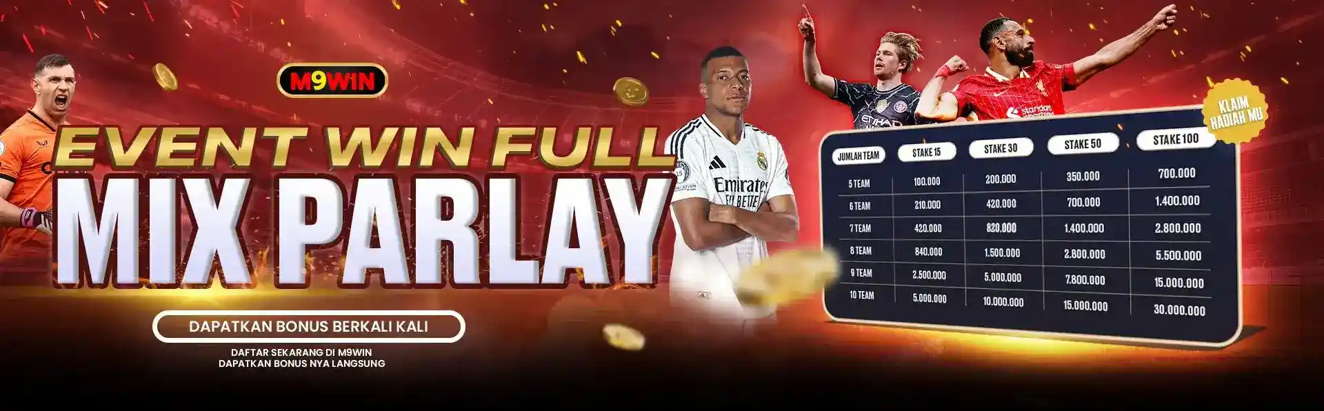 | Jumlah Team | Stake 15rb | Stake 30rb | Stake 50rb | Stake 100rb+ |